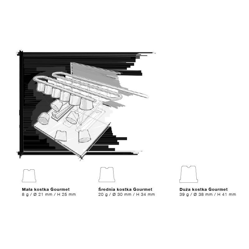 • Ergonomiczny dostęp do lodu poprzez przesuwne drzwiczki: podnoszone jednym ruchem zdecydowanie ułatwiają życie barmana.