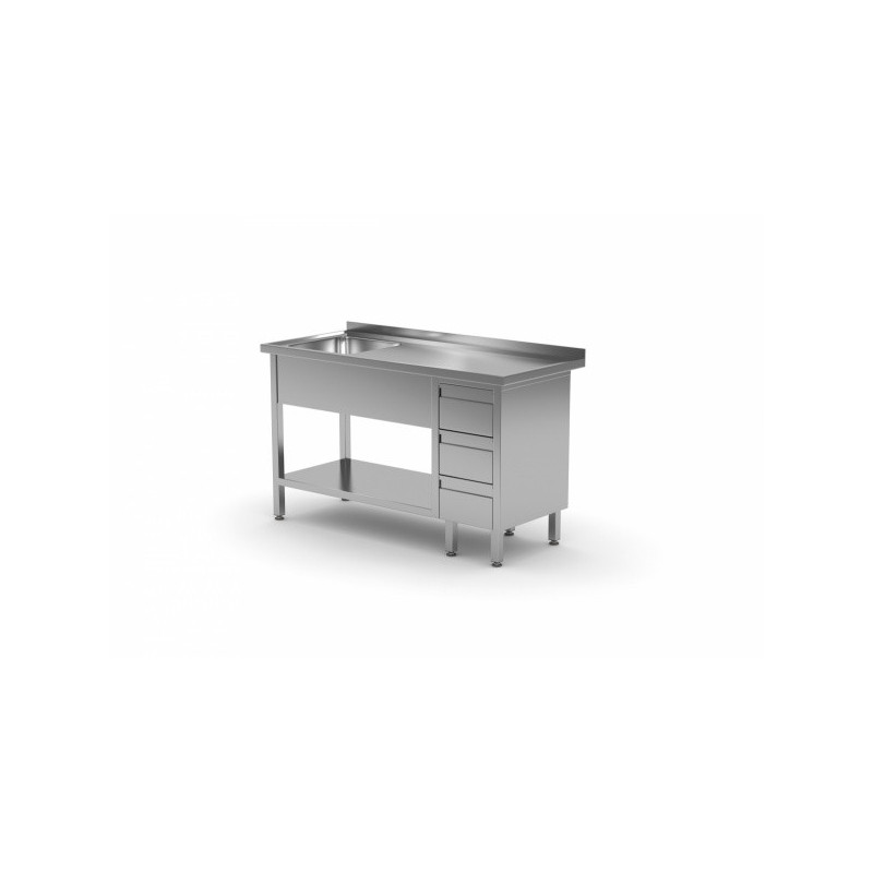 Stół ze zlewem jednokomorowym ,półką i szafką z trzema szufladami ze stali nierdzewnej