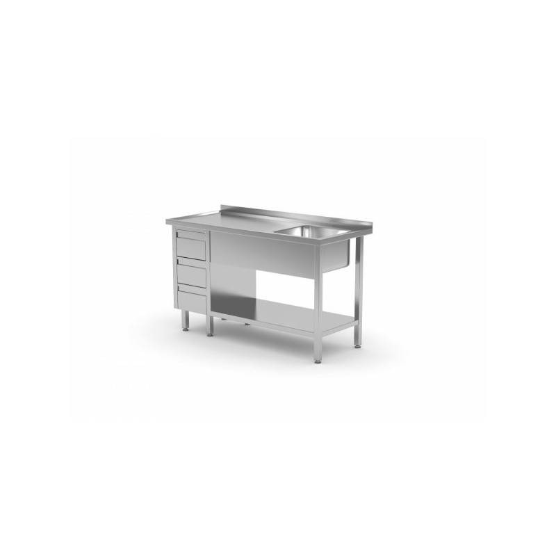 Stół ze zlewem jednokomorowym ,półką i szafką z trzema szufladami ze stali nierdzewnej